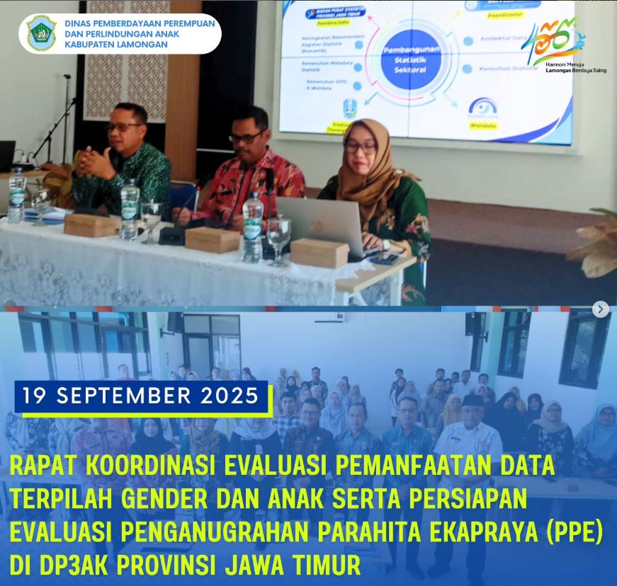 Dinas Pemberdayaan Perempuan, Perlindungan Anak, dan Kependudukan (DP3AK) Provinsi Jawa Timur menyelenggarakan Rapat Koordinasi Evaluasi Pemanfaatan Data Terpilah Gender dan Anak serta Persiapan Evaluasi Penganugrahan Parahita Ekapraya (PPE).